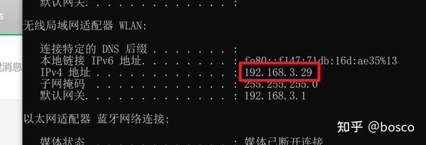 我们再顺便使用ipconfig命令查询一下本机的IP地址,也可以通过路由器后台管理页面查看